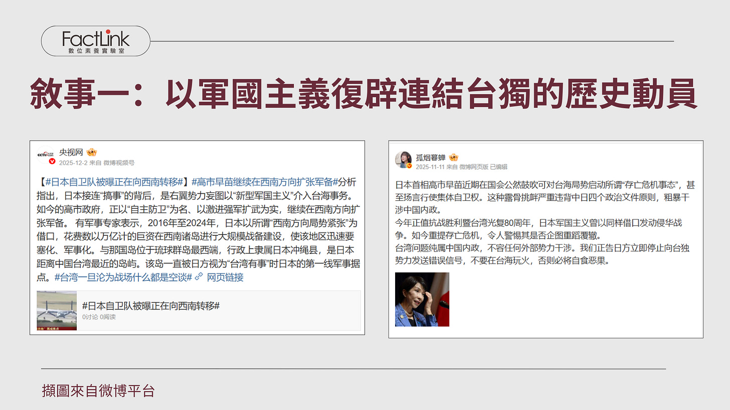 敘事主題一:以軍國主義復辟連結台獨的歷史動員